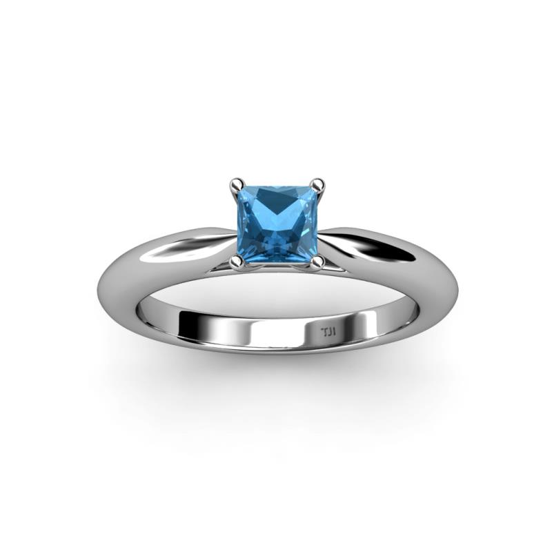 Princess Cut (5.5 mm) Blue Topaz Womens Solitaire Engagement Ring 0.90 ct 18K White Gold More Details ...