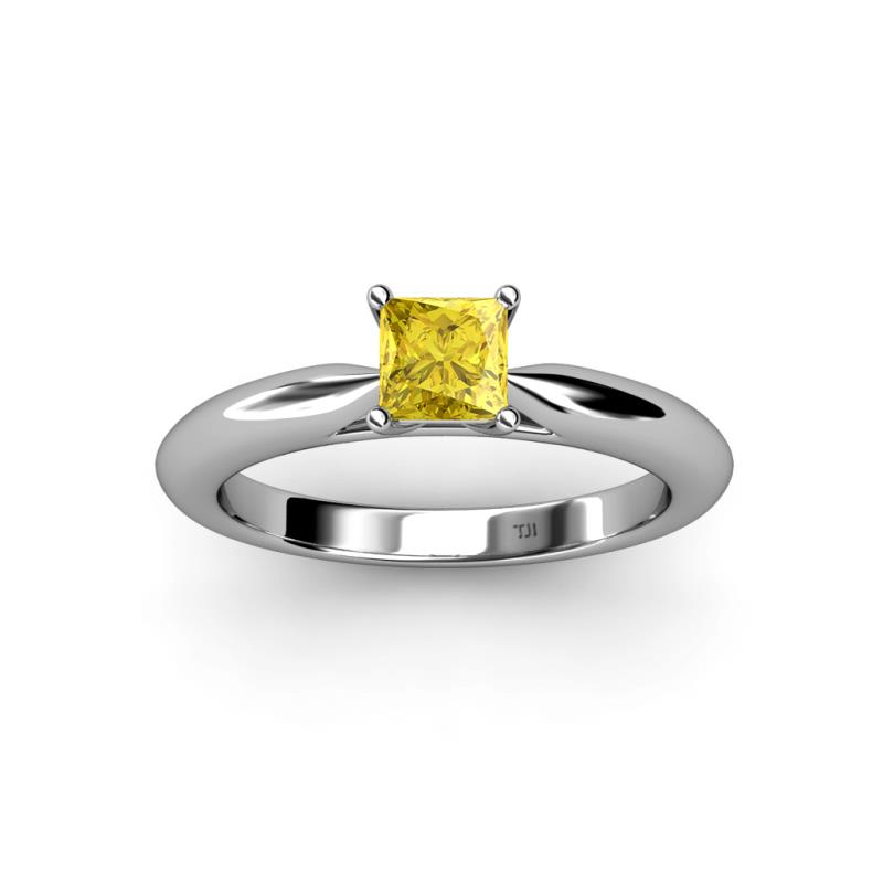 Princess Cut (5.5 mm) Yellow Sapphire Womens Solitaire Engagement Ring 0.85 ct 18K White Gold More Details ...