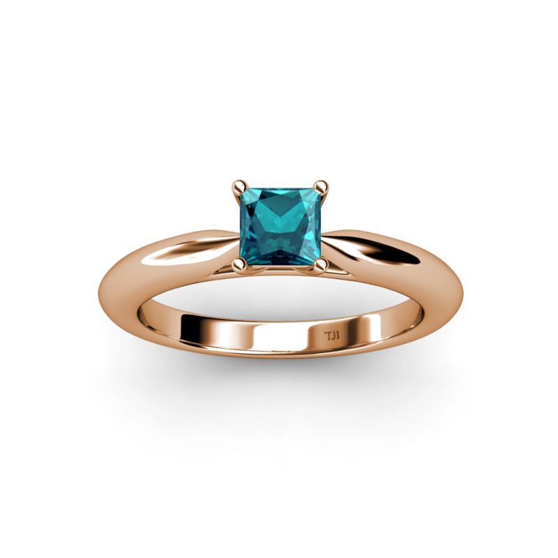 Princess Cut (5.5 mm) London Blue Topaz Womens Solitaire Engagement Ring 0.85 ct 14K Rose Gold More Details ...