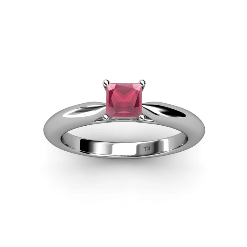 Princess Cut (5.5 mm) Rhodolite Garnet Womens Solitaire Engagement Ring 0.95 ct 18K White Gold More Details ...