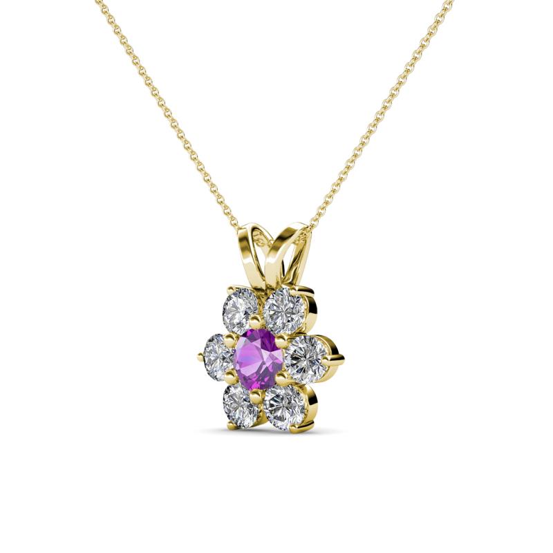 Amethyst and Round Natural Diamond (SI2-I1, G-H) Floral Halo Pendant 0.78 ct tw in 14K Yellow Gold.Included 16 Inches 14K Yellow Gold Chain. More Details ...