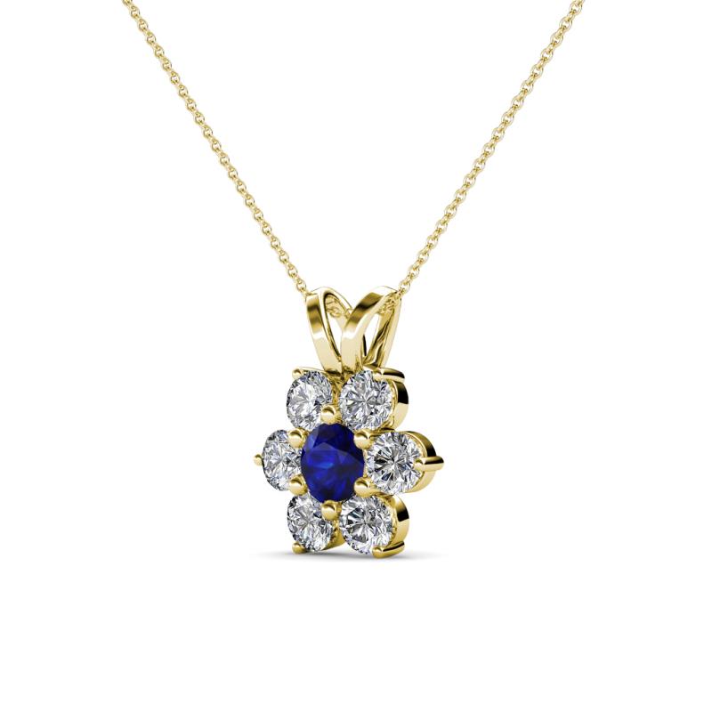 Blue Sapphire and Round Natural Diamond (SI2-I1, G-H) Floral Halo Pendant 0.81 ct tw in 14K Yellow Gold.Included 16 Inches 14K Yellow Gold Chain. More Details ...