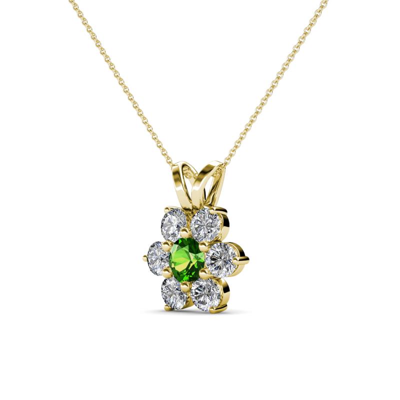 Green Garnet and Round Natural Diamond (SI2-I1, G-H) Floral Halo Pendant 0.83 ct tw in 14K Yellow Gold.Included 16 Inches 14K Yellow Gold Chain. More Details ...