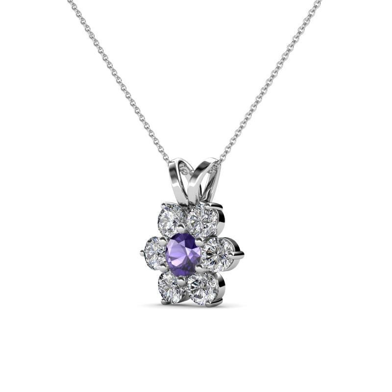 Iolite and Round Natural Diamond (SI2-I1, G-H) Floral Halo Pendant 0.78 ct tw in 14K White Gold.Included 16 Inches 14K White Gold Chain. More Details ...