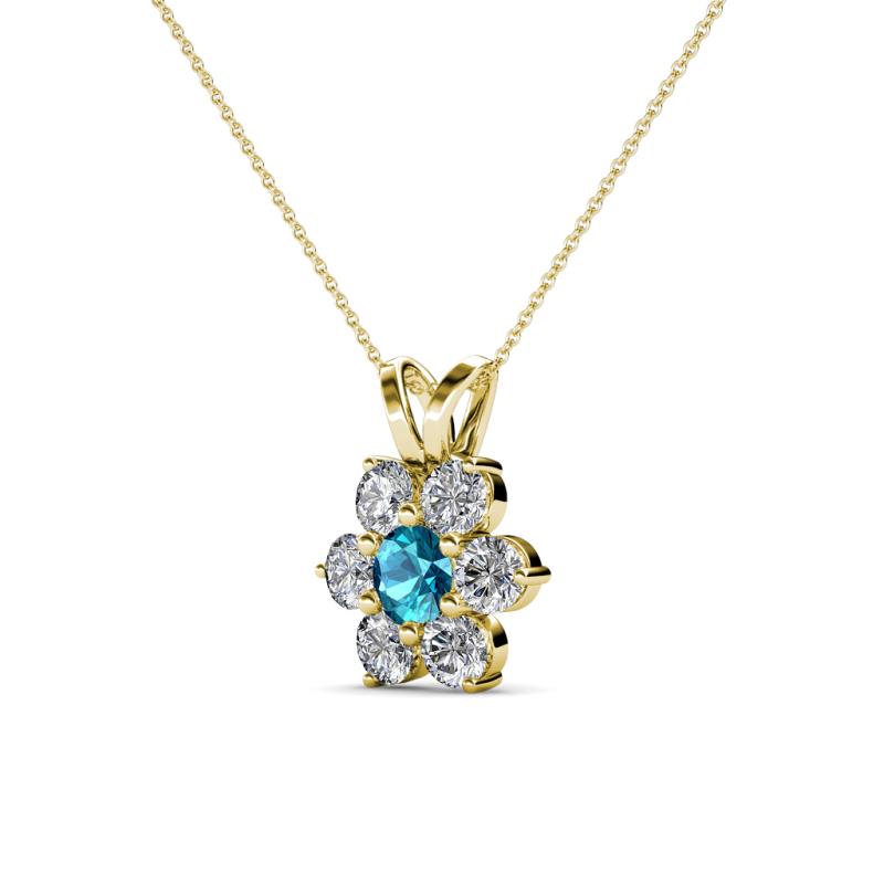 London Blue Topaz and Round Natural Diamond (SI2-I1, G-H) Floral Halo Pendant 0.79 ct tw in 14K Yellow Gold.Included 16 Inches 14K Yellow Gold Chain. More Details ...