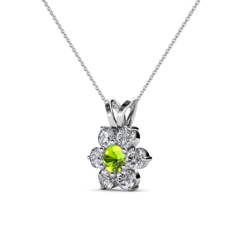 Peridot and Round Natural Diamond (SI2-I1, G-H) Floral Halo Pendant 0.83 ct tw in 14K White Gold.Included 16 Inches 14K White Gold Chain. More Details ...