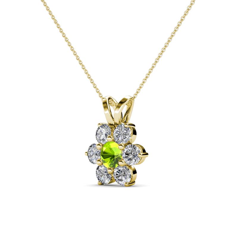Peridot and Round Natural Diamond (SI2-I1, G-H) Floral Halo Pendant 0.83 ct tw in 14K Yellow Gold.Included 16 Inches 14K Yellow Gold Chain. More Details ...