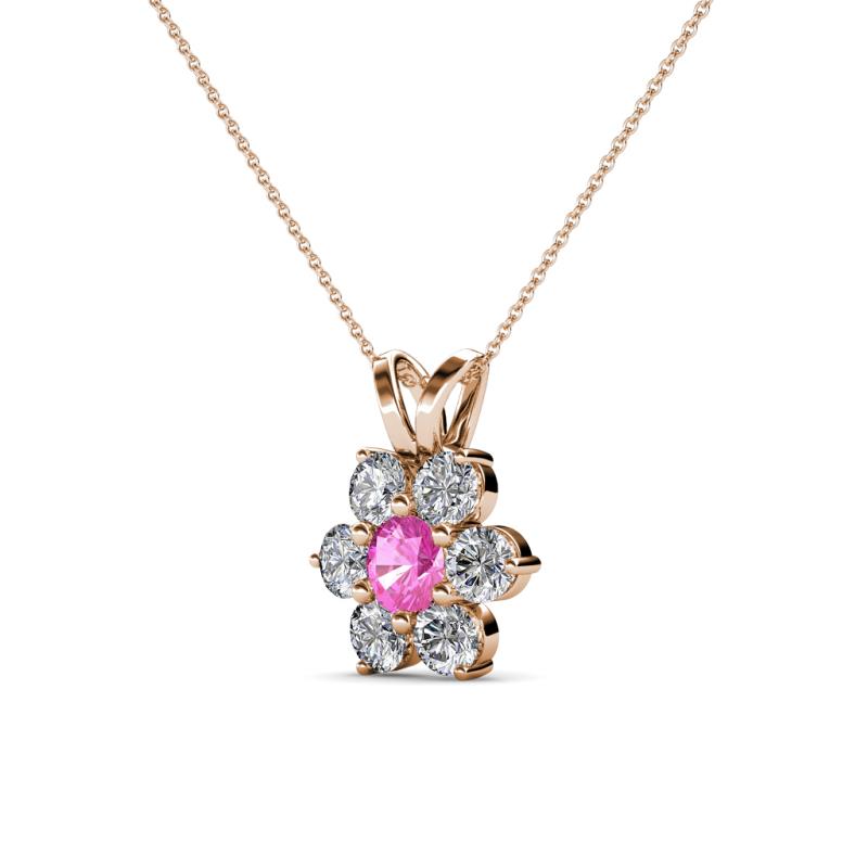 Pink Sapphire and Round Natural Diamond (SI2-I1, G-H) Floral Halo Pendant 0.81 ct tw in 14K Rose Gold.Included 16 Inches 14K Rose Gold Chain. More Details ...