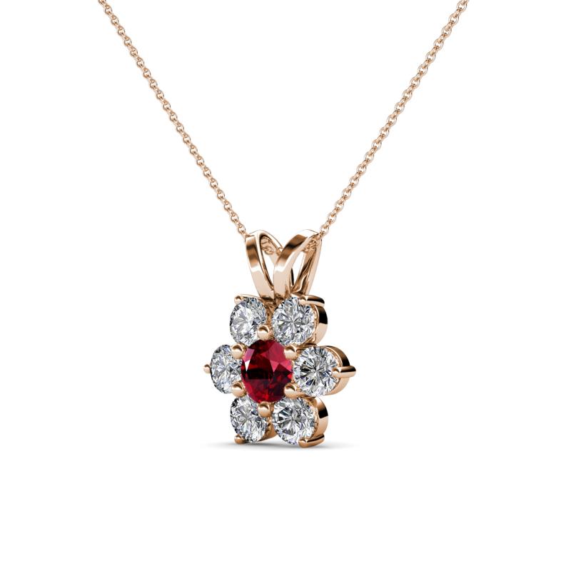 Ruby and Round Natural Diamond (SI2-I1, G-H) Floral Halo Pendant 0.81 ct tw in 14K Rose Gold.Included 16 Inches 14K Rose Gold Chain. More Details ...
