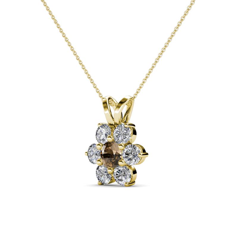 Smoky Quartz and Round Natural Diamond (SI2-I1, G-H) Floral Halo Pendant 0.80 ct tw in 14K Yellow Gold.Included 16 Inches 14K Yellow Gold Chain. More Details ...