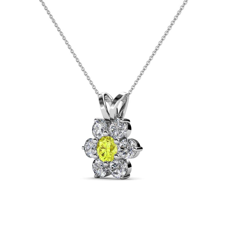 Yellow Diamond and Round Natural Diamond (SI2-I1, G-H) Floral Halo Pendant 0.80 ct tw in 14K White Gold.Included 16 Inches 14K White Gold Chain. More Details ...