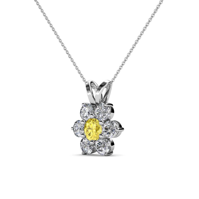 Yellow Sapphire and Round Natural Diamond (SI2-I1, G-H) Floral Halo Pendant 0.81 ct tw in 14K White Gold.Included 16 Inches 14K White Gold Chain. More Details ...