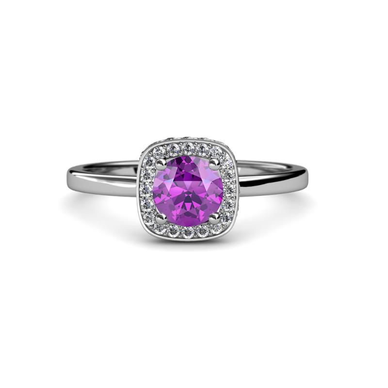 7/8 ctw Round Amethyst and Diamond Womens Halo Engagement Ring 14K White Gold More Details ...