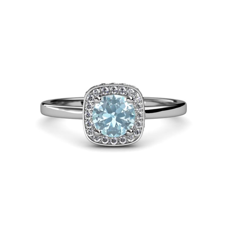 7/8 ctw Round Aquamarine and Diamond Womens Halo Engagement Ring 18K White Gold More Details ...