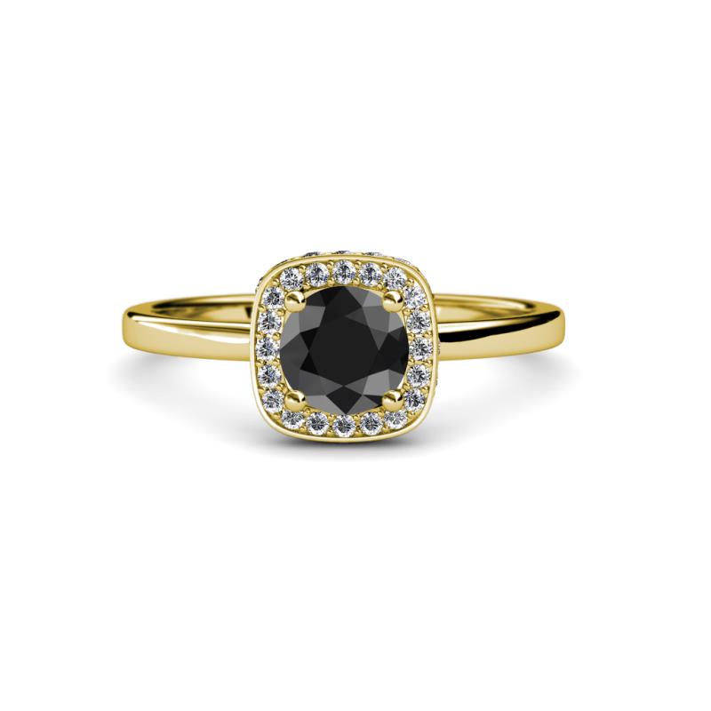 1 ctw Round Black and White Diamond Womens Halo Engagement Ring 18K Yellow Gold More Details ...