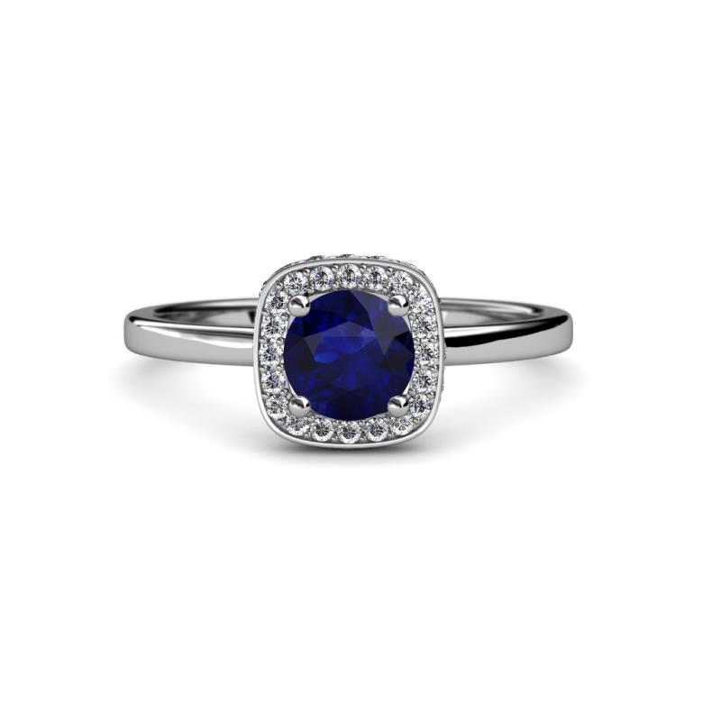7/8 ctw Round Blue Sapphire and Diamond Womens Halo Engagement Ring 14K White Gold More Details ...