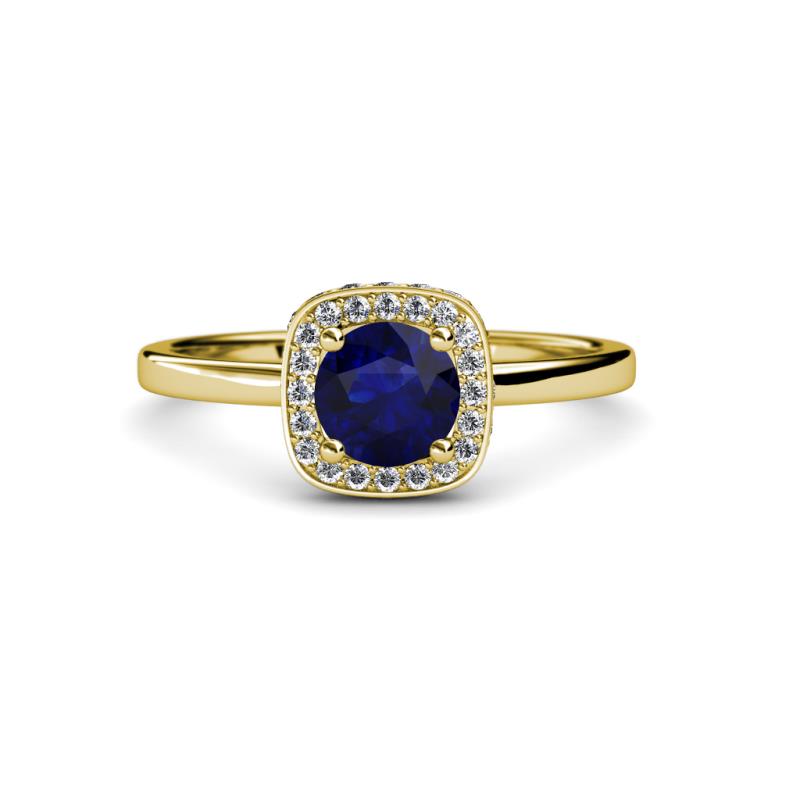 7/8 ctw Round Blue Sapphire and Diamond Womens Halo Engagement Ring 18K Yellow Gold More Details ...