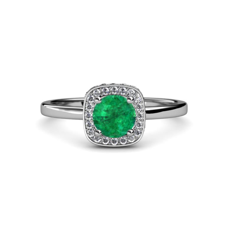 7/8 ctw Round Emerald and Diamond Womens Halo Engagement Ring 18K White Gold More Details ...