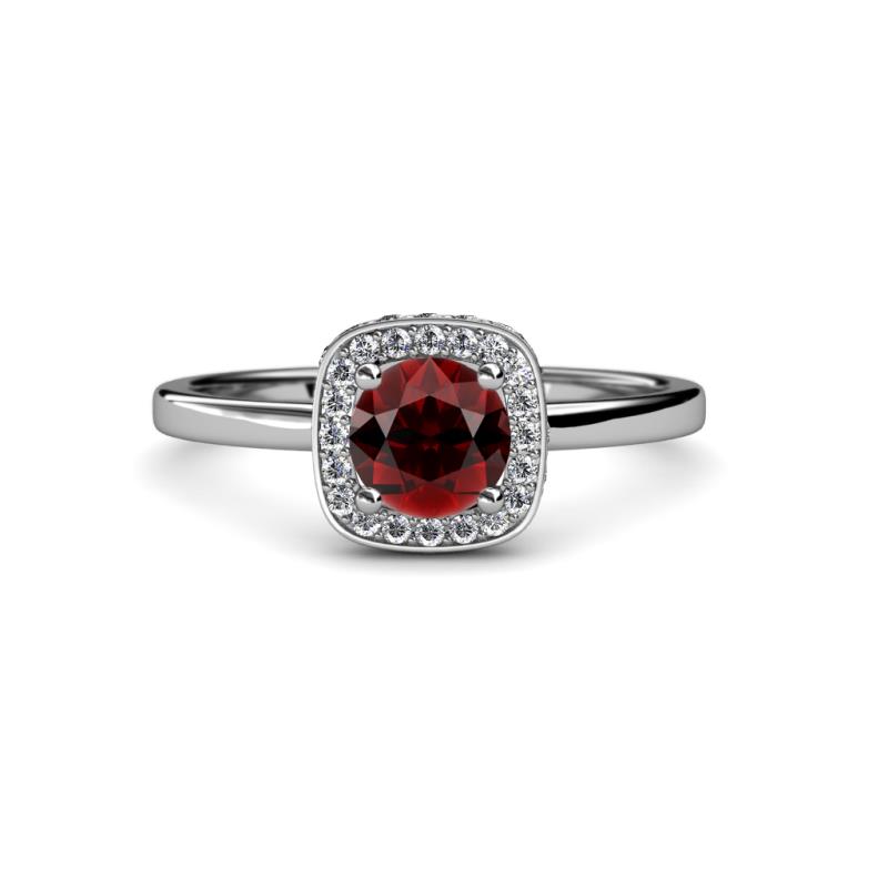 1 ctw Round Red Garnet and Diamond Womens Halo Engagement Ring 18K White Gold More Details ...