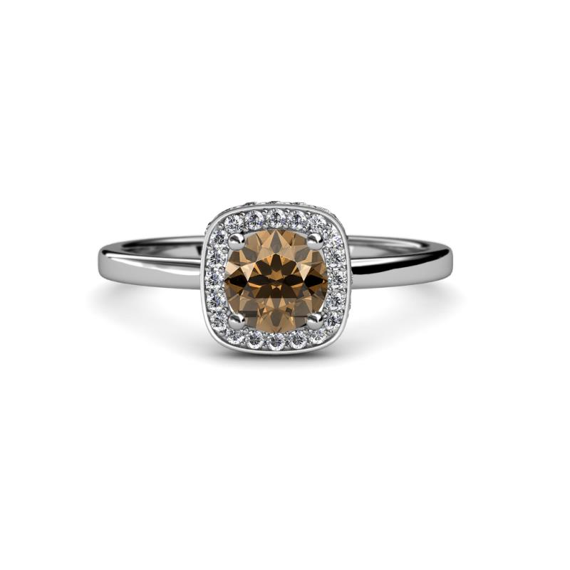 3/4 ctw Round Smoky Quartz and Diamond Womens Halo Engagement Ring 14K White Gold More Details ...