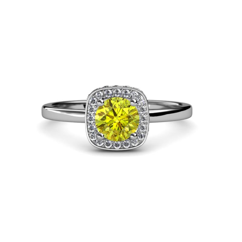 7/8 ctw Round Yellow and White Diamond Womens Halo Engagement Ring 14K White Gold More Details ...