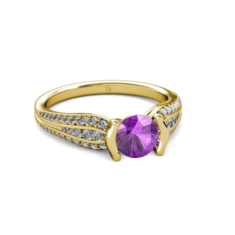 1 1/3 ctw Round Amethyst and Diamond Womens Engagement Ring 14K Yellow Gold More Details ...