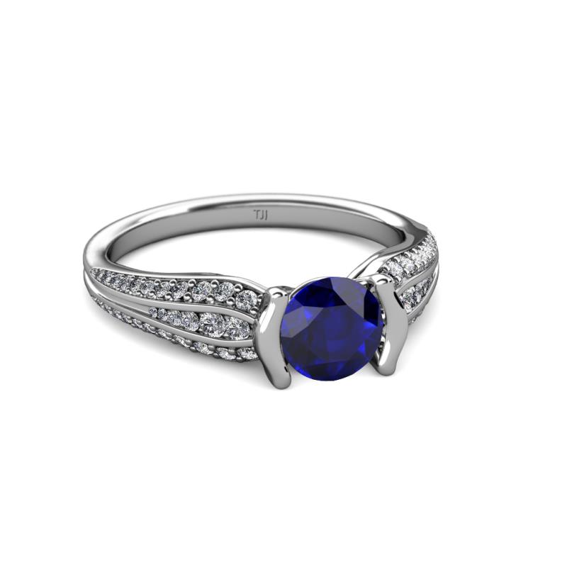 1 1/2 ctw Round Blue Sapphire and Diamond Womens Engagement Ring 14K White Gold More Details ...