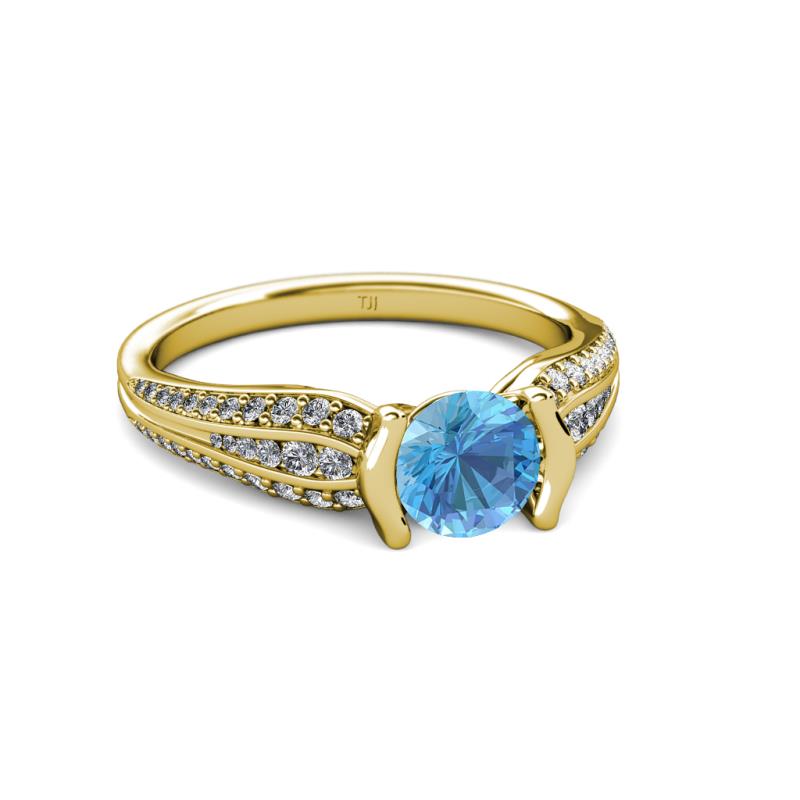 1 1/2 ctw Round Blue Topaz and Diamond Womens Engagement Ring 14K Yellow Gold More Details ...