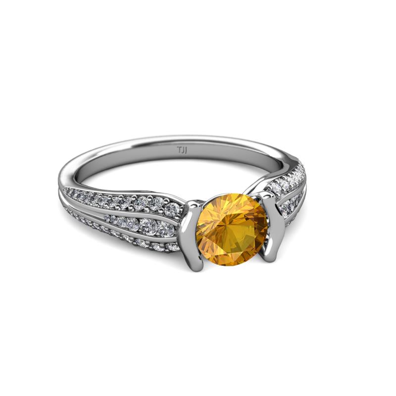 1 1/3 ctw Round Citrine and Diamond Womens Engagement Ring 18K White Gold More Details ...