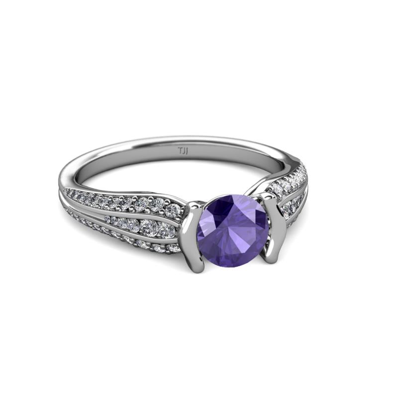 1 1/3 ctw Round Iolite and Diamond Womens Engagement Ring 18K White Gold More Details ...