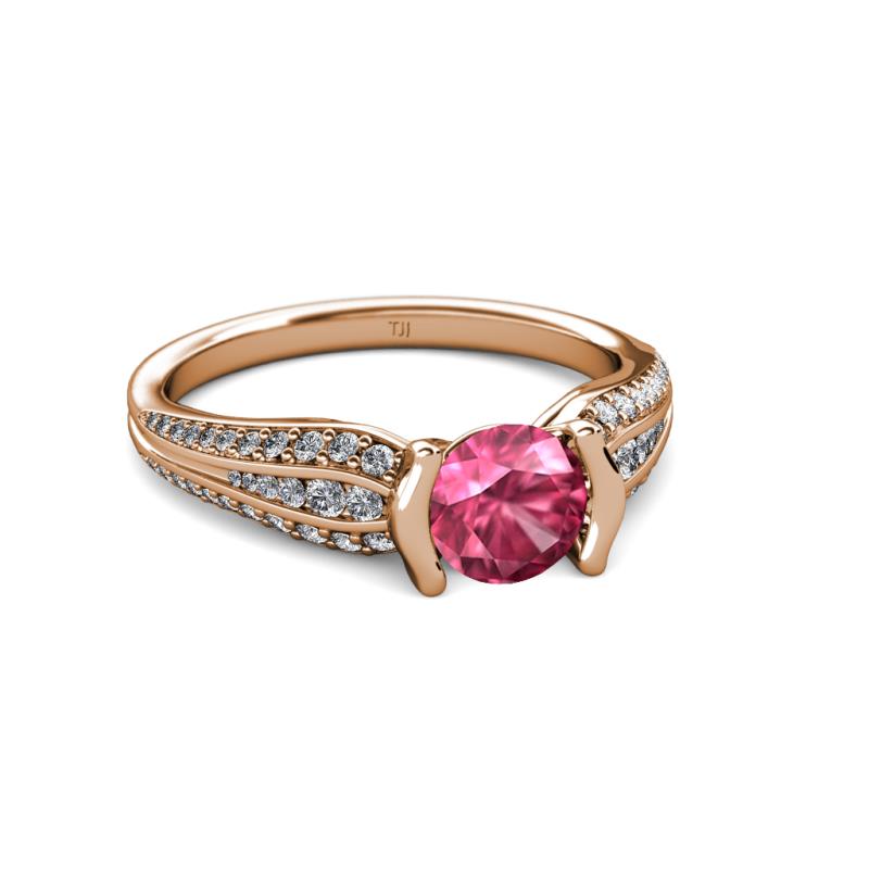 1 1/3 ctw Round Pink Tourmaline and Diamond Womens Engagement Ring 14K Rose Gold More Details ...