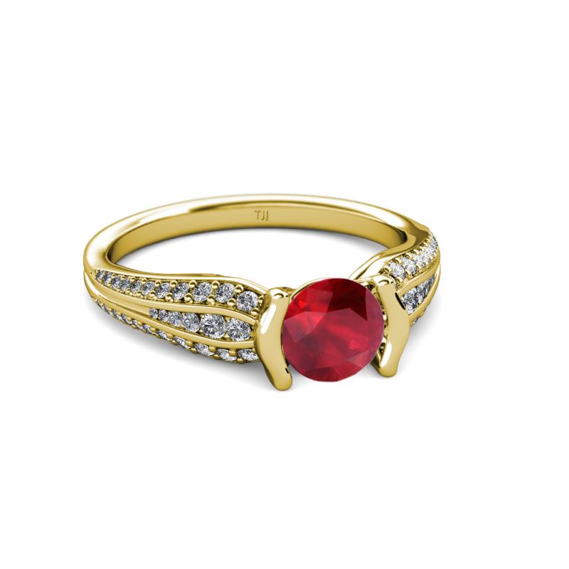 1 1/2 ctw Round Ruby and Diamond Womens Engagement Ring 14K Yellow Gold More Details ...