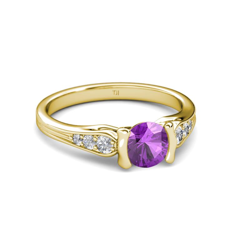 1 1/4 ctw Round Amethyst and Diamond Womens Engagement Ring 14K Yellow Gold More Details ...