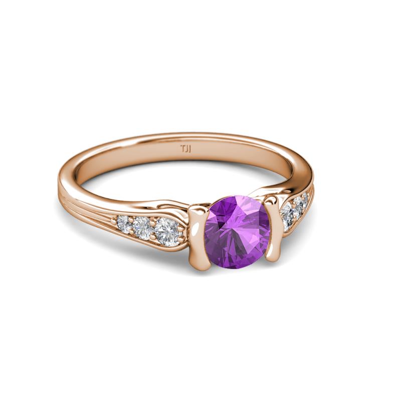 1 1/4 ctw Round Amethyst and Diamond Womens Engagement Ring 14K Rose Gold More Details ...
