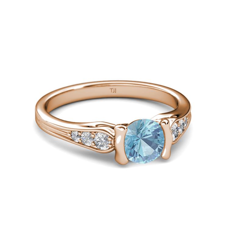1 1/4 ctw Round Aquamarine and Diamond Womens Engagement Ring 14K Rose Gold More Details ...