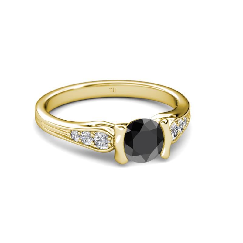 1 1/3 ctw Round Black and White Diamond Womens Engagement Ring 14K Yellow Gold More Details ...