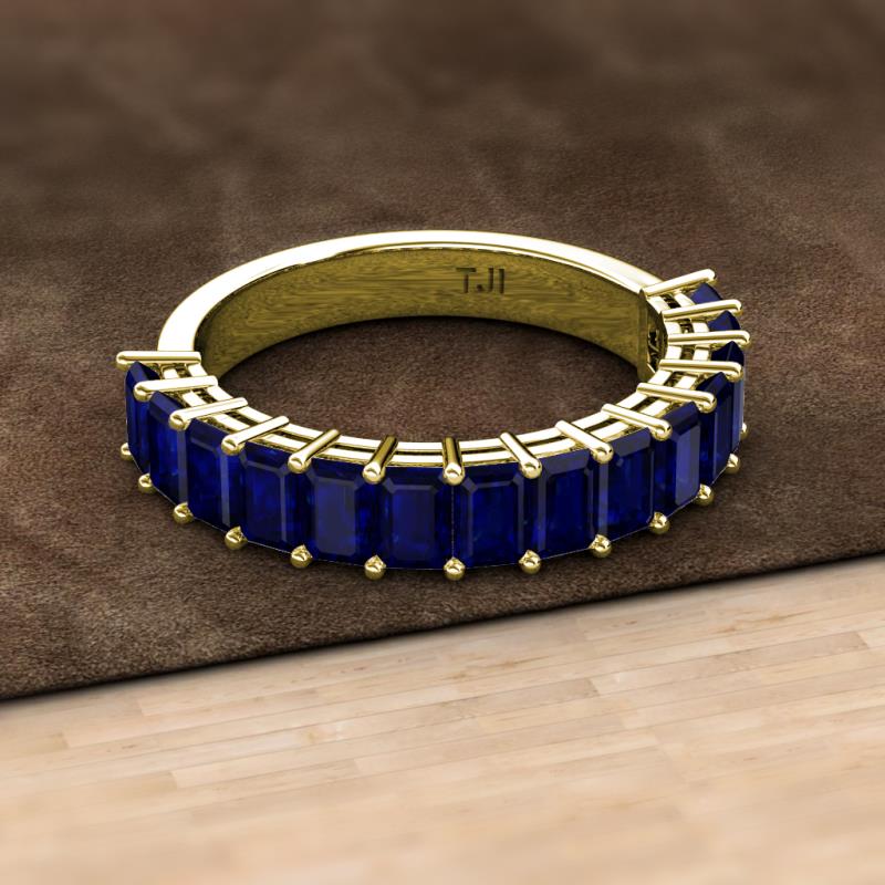 Emerald Cut (5x3 mm) Blue Sapphire 4 7/8 ctw 14 Stone Womens Wedding Band Stackable 14K Yellow Gold More Details ...