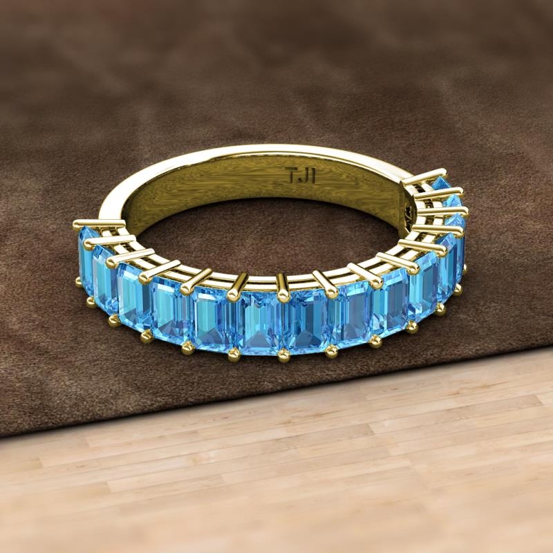 Emerald Cut (5x3 mm) Blue Topaz 4 1/5 ctw 14 Stone Womens Wedding Band Stackable 10K Yellow Gold More Details ...