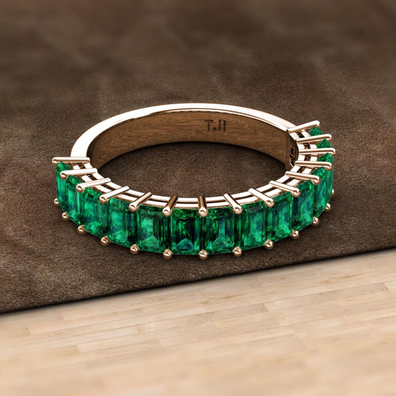 Emerald Cut (5x3 mm) Emerald 4 1/5 ctw 14 Stone Womens Wedding Band Stackable 10K Rose Gold More Details ...