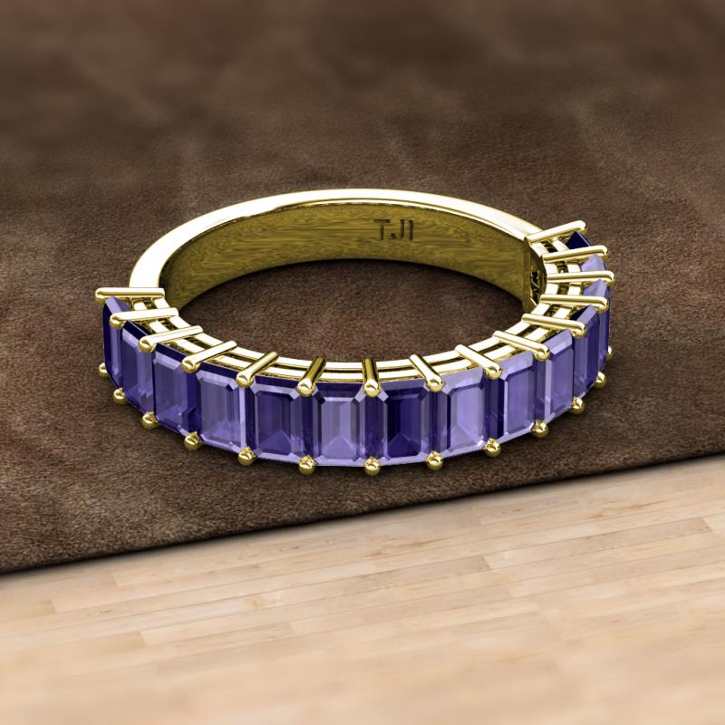 Emerald Cut (5x3 mm) Iolite 3 1/2 ctw 14 Stone Womens Wedding Band Stackable 10K Yellow Gold More Details ...