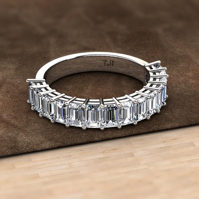 Emerald Cut (5x3 mm) Lab Grown Diamond 4 5/8 ctw 14 Stone Womens Wedding Band Stackable Sterling Silver More Details ...
