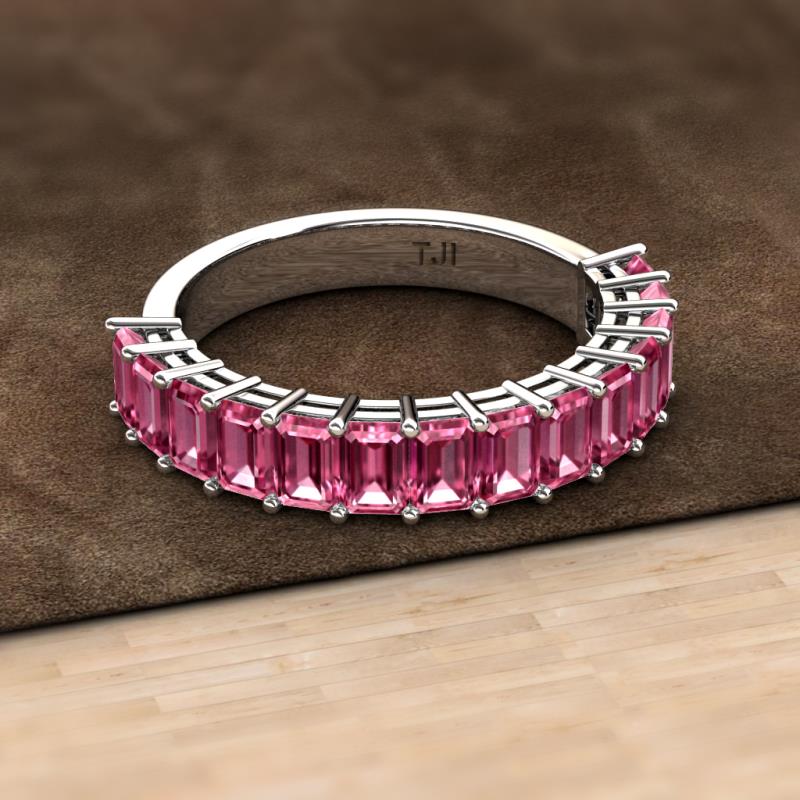 Emerald Cut (5x3 mm) Pink Tourmaline 4 1/5 ctw 14 Stone Womens Wedding Band Stackable Sterling Silver More Details ...