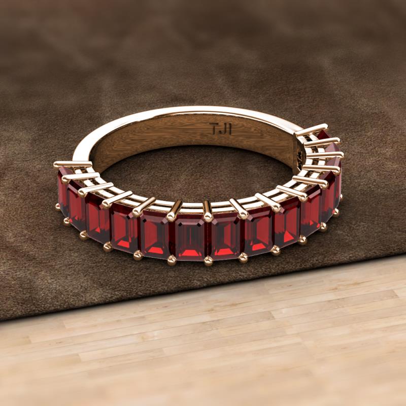 Emerald Cut (5x3 mm) Red Garnet 4 1/5 ctw 14 Stone Womens Wedding Band Stackable 18K Rose Gold More Details ...