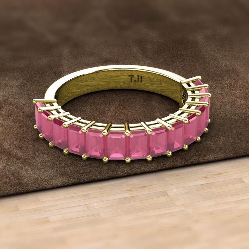 Emerald Cut (5x3 mm) Rhodolite Garnet 4 1/5 ctw 14 Stone Womens Wedding Band Stackable 10K Yellow Gold More Details ...