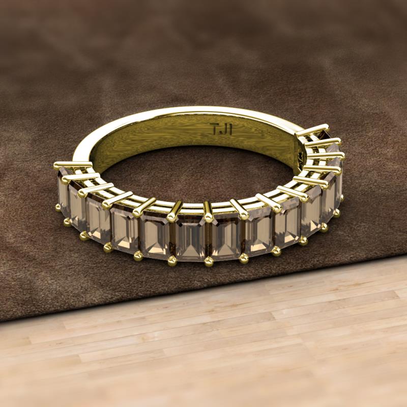 Emerald Cut (5x3 mm) Smoky Quartz 3 1/3 ctw 14 Stone Womens Wedding Band Stackable 10K Yellow Gold More Details ...