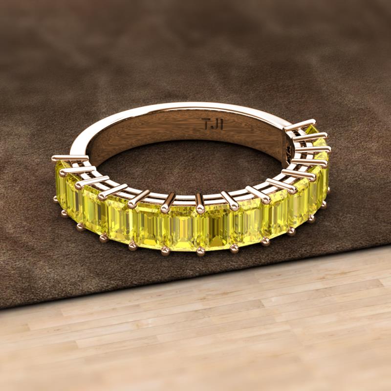 Emerald Cut (5x3 mm) Yellow Sapphire 4 7/8 ctw 14 Stone Womens Wedding Band Stackable 10K Rose Gold More Details ...