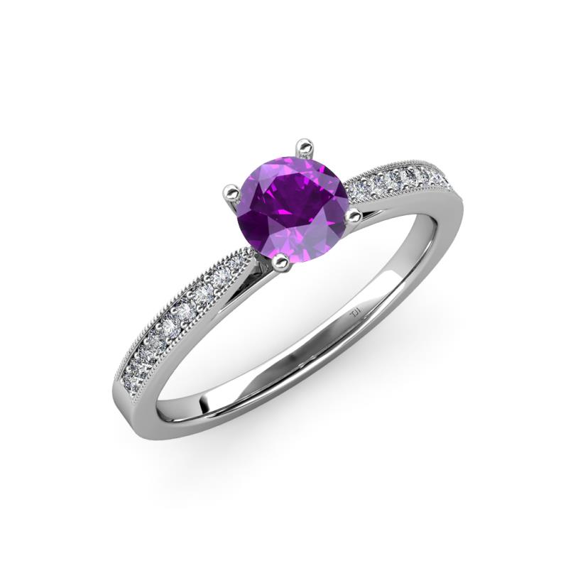 Amethyst and Diamond Womens Engagement Ring with Milgrain Work 1.05 ctw Platinum More Details ...