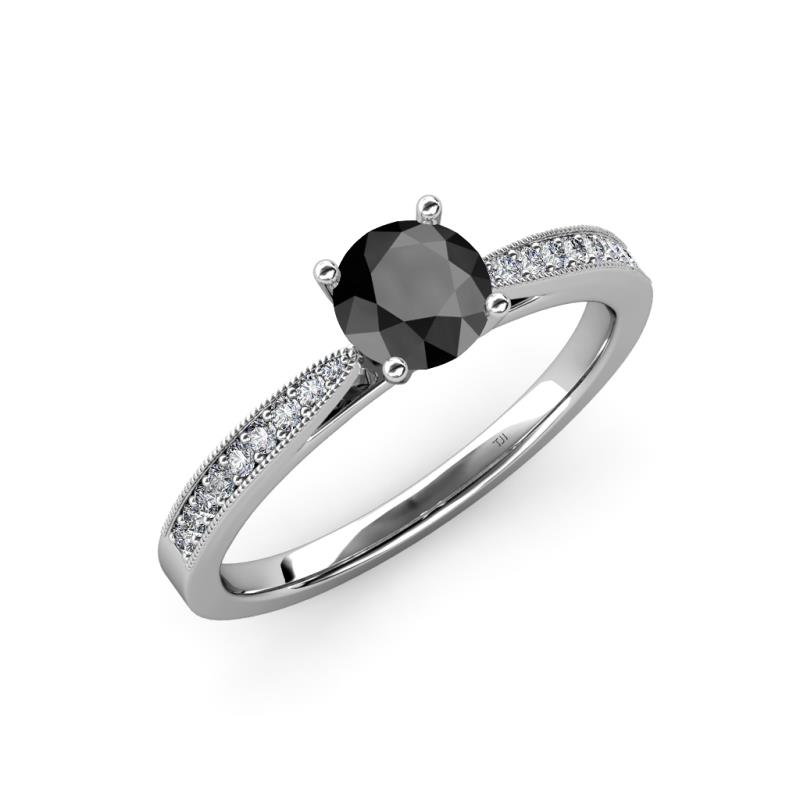This 1.18 cttw Engagement Ring sparkles like no other,featuring astounding blooming White Diamonds with Milgrain detailing to enrich the Center Black Diamond making an exceptional way to complement your fashion ensembles.
