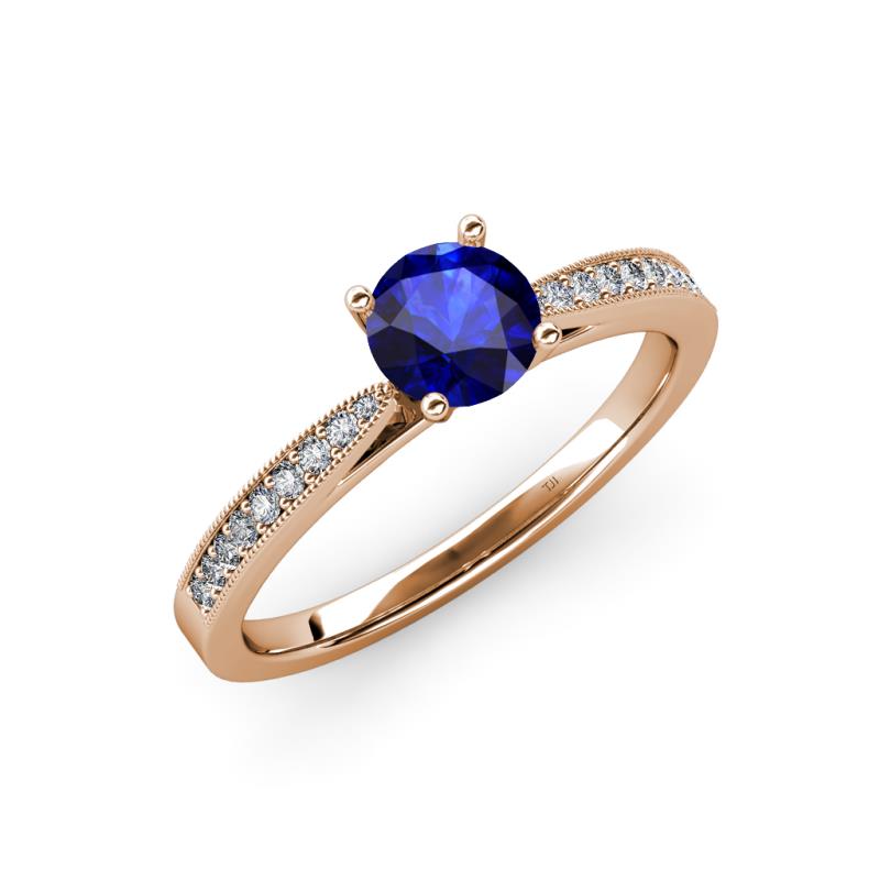 Blue Sapphire and Diamond Womens Engagement Ring with Milgrain Work 1.13 ctw 14K Rose Gold More Details ...