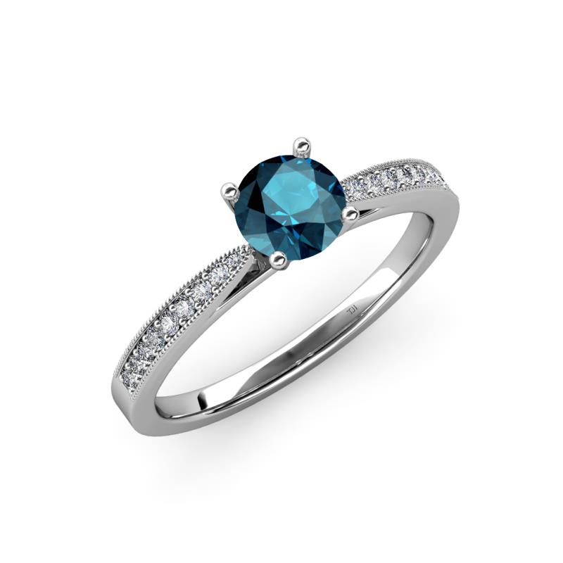 Blue and White Diamond Womens Engagement Ring with Milgrain Work 1.08 ctw 18K White Gold More Details ...